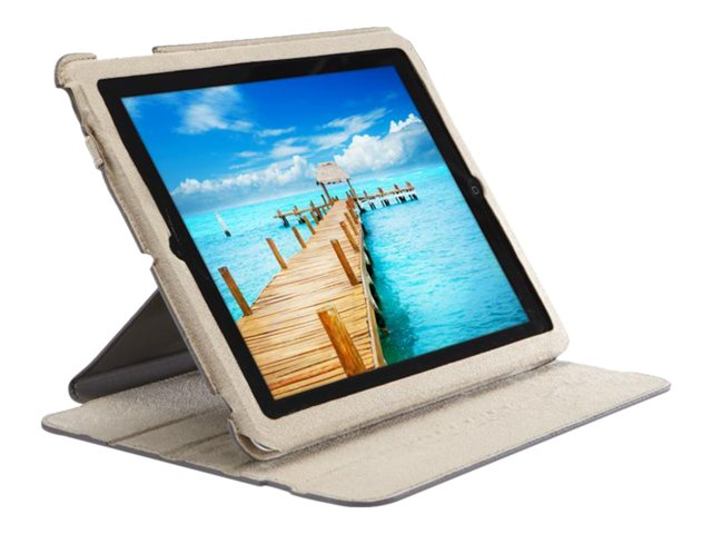 Inspiré par le style sophistiqué d'un carnet de notes, cet étui-support ultra mince apporte un élément résolument classique à la récente technologie des tablettes 10,1". Les différentes inclinaisons possibles ainsi que l'accès à tous les ports de connexion et aux commandes contribuent à une convivialité hors pair.