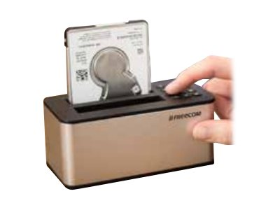 Le Freecom mDock sécurisé par clavier pour disques de 2,5 pouces est une double station d'accueil pour disques durs qui utilise un encryptage matériel AES 256 bits afin de protéger les données sauvegardées sur les disques durs internes de 2,5 pouces insérés dans la station. Le clavier permet aux utilisateurs de définir des codes PIN pour accéder aux données encryptées sauvegardées sur le disque dur pour les conserver intactes et en toute sécurité. Il s'agit d'une station d'accueil à deux ouvertures pour les disques durs de 2.5 pouces : une ouverture pour l'encryptage et l'autre pour les disques non encryptés pour une utilisation en mode non encrypté s'il n'y a pas besoin de protéger les données.