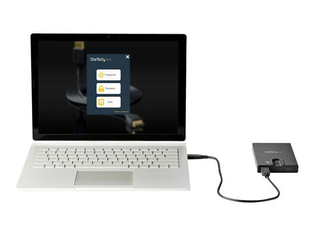 StarTech.com Boîtier de disque dur SATA de 2,5" crypté - Accès par empreinte digitale - Boitier externe - 2.5" - SATA 6Gb/s - USB 3.0 - noir - Conformité TAA
