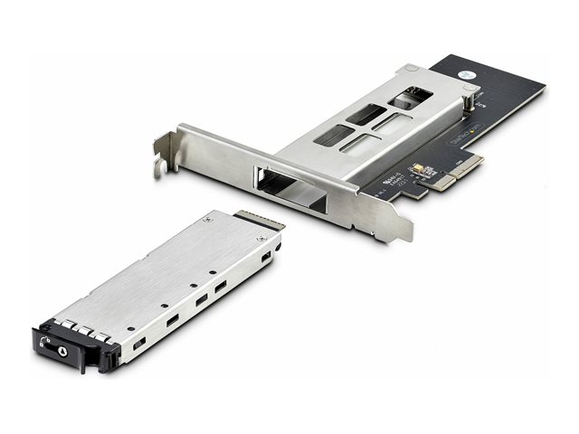 StarTech.com M.2 NVMe SSD to PCIe x4 Mobile Rack/Backplane with Removable Tray for PCI Express Expansion Slot, Tool-less Installation, PCIe 4.0/3.0 Hot-Swap Drive Bay, Key Lock - 2 Keys Included - Adaptateur d'interface - M.2 - M.2 NVMe Card / PCIe 4.0 (NVMe) - PCIe 4.0 x4 - noir, argent - pour StarTech.com Ventilateur d'évacuation arrière de la fente d'extension avec connecteur LP4
