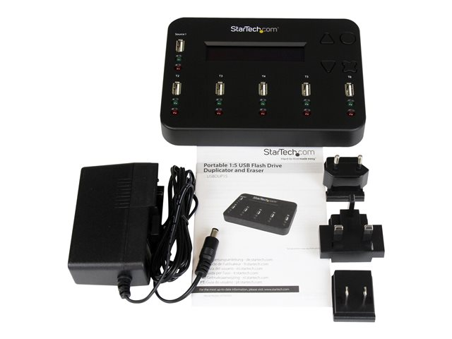 Le duplicateur / effaceur de clé USB OnetoFive USBDUP15 propose une solution rapide pour créer jusqu'à cinq sauvegardes d'une clé USB ou effacer jusqu'à cinq clés USB en toute sécurité sans connexion à un ordinateur hôte.