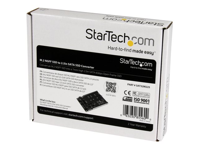 StarTech.com Adaptateur M.2 SSD vers SATA 2,5" - Carte Convertisseur SSD M2 vers SATA 2.5" - Contrôleur de stockage - 1 Canal - SATA 6Gb/s - SATA 6Gb/s - pour P/N: BRACKET125PT, BRACKET125PTP, SATERASER4, SDOCK1EU3P2, SDOCK4U313, USB31C2SAT3 SAT32M225