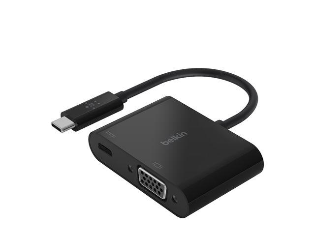 Belkin USB-C to VGA + Charge Adapter - Adaptateur vidéo - 24 pin USB-C mâle pour HD-15 (VGA), USB-C (alimentation uniquement) femelle - noir - support 1080p, USB Power Delivery (60W)