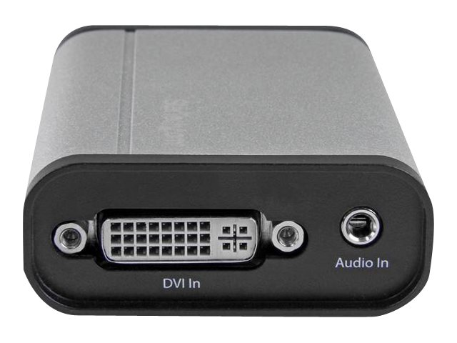 Ce boîtier d'acquisition vidèo DVI vers USB 3.0 enregistre des vidèos DVI haute rèsolution sur votre ordinateur. Avec son boîtier en aluminium, cet appareil solide est adaptè à une utilisation fixe ou mobile. Il est dotè d'une entrèe audio 3,5 mm pour les enregistrements audio et les commentaires en voix off et d'un port passthrough DVI qui permet de connecter un moniteur pour visionner la vidèo pendant son acquisition.