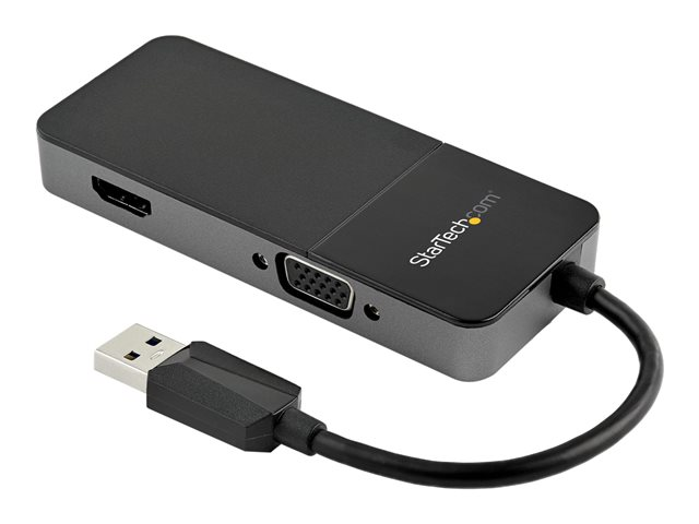 StarTech.com USB 3.0 to HDMI and VGA Adapter, 4K/1080p USB Type-A Dual Monitor Multiport Adapter Converter, External Video Graphics Card for Multiple Screens, Multi Display USB Adapter - USB 3.0 to HDMI VGA (USB32HDVGA) - Adaptateur vidéo - USB type A mâle pour HD-15 (VGA), HDMI femelle - noir, argent