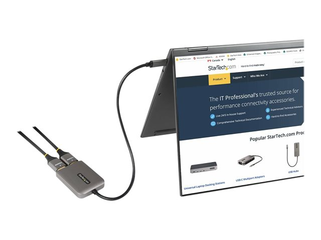 StarTech.com USB-C to Dual HDMI MST HUB, Dual HDMI 4K 60Hz, USB Type C Multi Monitor Adapter for Laptop w/ 1ft (30cm) cable, DP 1.4 Multi-Stream Transport Hub, USB Type C to 2x HDMI Ports - USB-C to HDMI Splitter (MST14CD122HD) - Adaptateur vidéo - 24 pin USB-C mâle pour HDMI femelle - gris