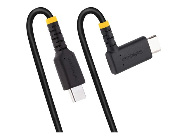 StarTech.com 6in (15cm) USB C Charging Cable Right Angle, 60W PD 3A, Heavy Duty Fast Charge USB-C Cable, USB 2.0 Type-C, Durable and Rugged Aramid Fiber, S20/iPad/Pixel - High Quality USB Charging Cord (R2CCR-15C-USB-CABLE) - Câble USB - 24 pin USB-C (M) droit pour 24 pin USB-C (M) angle droit - USB 2.0 - 3 A - 15 cm - noir