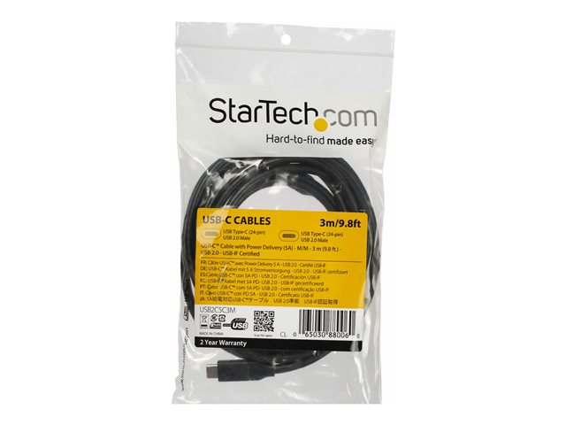 StarTech.com Câble USB-C vers USB-C avec Power Delivery 5A de 3 m - Cordon USB 2.0 Type-C certifié USB-IF - Noir - Câble USB - 24 pin USB-C (M) pour 24 pin USB-C (M) - Thunderbolt 3 / USB 2.0 - 5 A - 3 m - noir USB2C5C3M