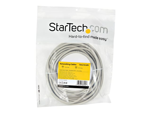 StarTech.com 10m CAT6A Ethernet Cable, 10 Gigabit Shielded Snagless RJ45 100W PoE Patch Cord, CAT 6A 10GbE STP Network Cable w/Strain Relief, Grey, Fluke Tested/UL Certified Wiring/TIA - Category 6A - 26AWG (6ASPAT10MGR) - Cordon de raccordement - RJ-45 (M) pour RJ-45 (M) - 10 m - STP - CAT 6a - moulé, sans crochet - gris 6ASPAT10MGR
