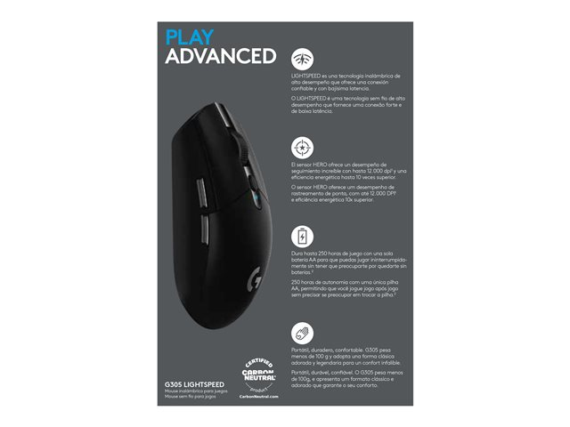 Logitech G G305 - Souris - optique - 6 boutons - sans fil - 2.4 GHz - récepteur sans fil USB - noir 910-005283