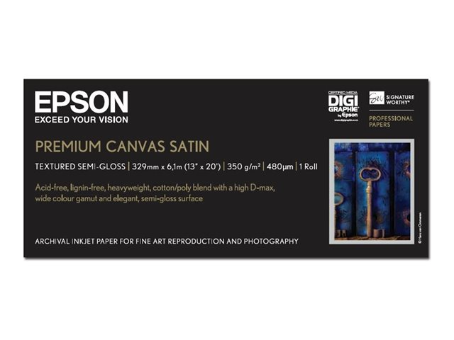 Epson PremierArt Water Resistant Canvas - Brillant - rouleau (33 cm x 6,1 m) - 350 g/m² - 1 rouleau(x) papier toilé - pour SureColor P5000, P800, SC-P10000, P20000, P5000, P700, P7500, P900, P9500