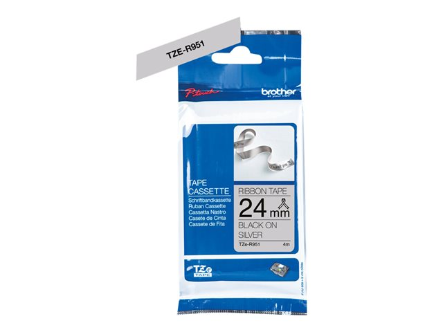 Brother TZe-R951 - Satin - noir sur argent - Rouleau (2,4 cm x 4 m) 1 cassette(s) bande de ruban - pour Brother PT-D600; P-Touch PT-D800, P900, P950; P-Touch Cube Plus PT-P710