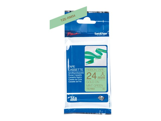 Brother TZe-RM54 - Satin - or sur vert menthe - Rouleau (2,4 cm x 4 m) 1 cassette(s) bande de ruban - pour Brother PT-D600; P-Touch PT-3600, D600, D800, E550, P750, P900, P950; P-Touch EDGE PT-P750 TZERM54