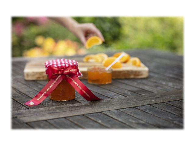 Lors d'occasions spéciales, utilisez le ruban TZe-RW54 avec votre étiqueteuse P-touch pour adresser vos vœux aux personnes qui vous sont chères.  Laissez libre cours à vos talents et personnalisez vos cadeaux, vos cartes et vos créations avec le ruban tissu TZe-RW54 Brother original.