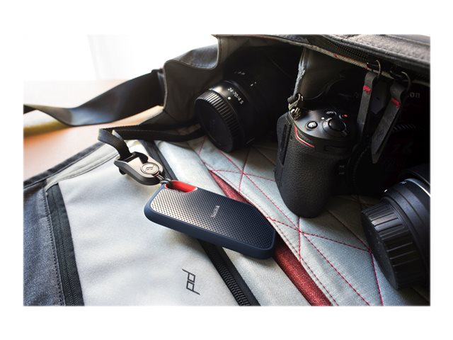 Accélérez le débit. Déplacez plus rapidement les fichiers. Le disque SSD robuste et portable SanDisk Extreme offre des transferts rapides. Une solution idéale pour l'enregistrement et l'édition de photos et vidéos haute résolution. De classe IP55, il est également résistant à la pluie, aux éclaboussures, aux déversements et à la poussière.