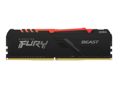 Le module Kingston FURY Beast DDR4 RGB offre une augmentation des performances avec des vitesses allant jusqu'à 3733MHz, avec un style agressif où son éclairage RGB sur toute la longueur du module produit des effets fluides et étonnants. Cette mise à niveau éblouissante et rentable est disponible à des vitesses de 2666MHz-3733MHz, des latences CL15-19, des capacités de 8Go-32Go en module simple, et de 16Go-128Go en kit. Son overclocking automatique Plug and Play à des vitesses de 2666MHz est disponible sur Intel XMP et AMD Ryzen. Le module FURY Beast DDR4 RGB reste froid grâce à son diffuseur de chaleur élégant et mince.