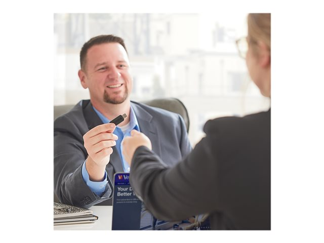 La clé USB Store 'n' Go PinStripe de Verbatim est rétractable, ce qui protège la connexion USB lorsqu'elle n'est pas utilisée, sans nécessiter de capuchon qui se perd facilement.