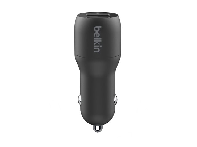 Belkin BOOST CHARGE Double chargeur - Adaptateur d'alimentation pour voiture - 24 Watt - 4.8 A - 2 connecteurs de sortie (USB) - sur le câble : Lightning - noir
