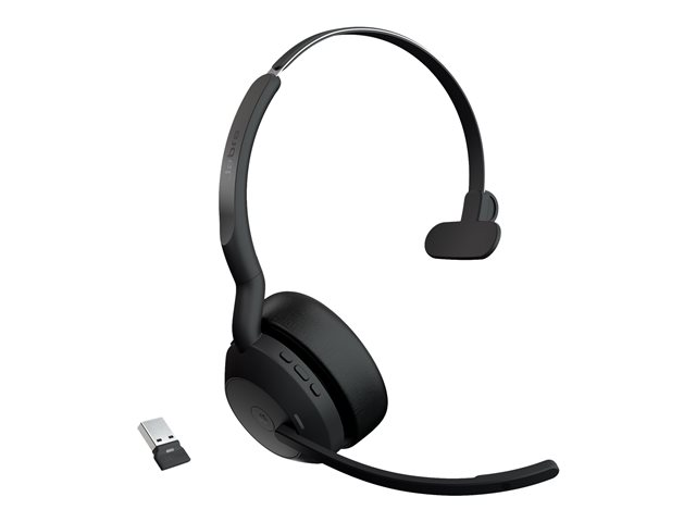 Jabra Evolve2 55 MS Mono - Micro-casque - sur-oreille - Bluetooth - sans fil - Suppresseur de bruit actif - USB-A via adaptateur Bluetooth - noir - certifié Zoom, Cisco Webex Certified, Certifié Tencent Meeting, Certifié Alcatel-Lucent, Certifié Avaya, Certifié Unify, Certifié MFi, Certifié Google Meet, Certifié Amazon Chime