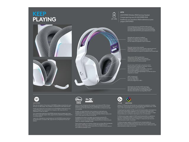 Enfin un casque capable d'être aussi expressif que vous. Le casque G733 est sans fil et conçu pour un confort inégalé. Il est doté du son surround, des filtres vocaux et de l'éclairage avancé dont vous avez besoin pour écouter, communiquer et jouer avec plus de style que jamais.
