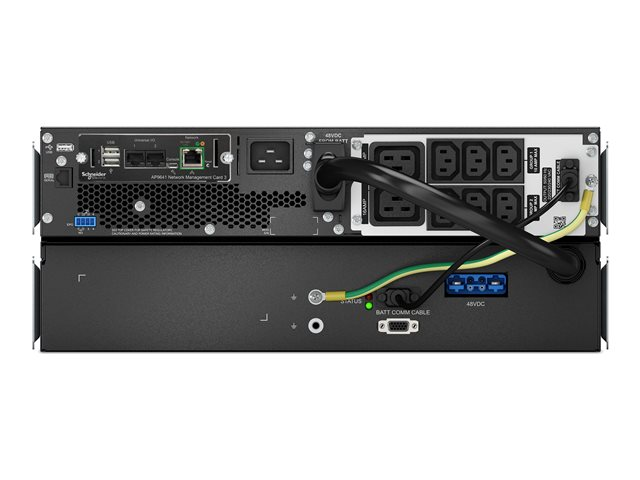 APC Smart-UPS en ligne - Onduleur (rack-montable) - CA 220/230 V - 2700 Watt - 3000 VA - USB, Ethernet 10/100/1000, serial - connecteurs de sortie : 8 - 4U - 1.83 m cordon - noir, argent - avec APC UPS Network Management Card