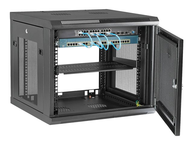 StarTech.com "9U Wall Mount Server Rack Cabinet - 4-Post Adjustable Depth (2"" to 19"") Network Equipment Enclosure with Cable Management (RK920WALM)" - Armoire de rack - montable sur mur - noir - 9U RK920WALM