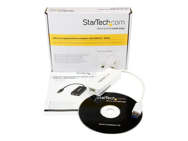 StarTech.com Adaptateur réseau USB 3.0 vers Gigabit Ethernet - Convertisseur USB vers RJ45 avec 1 port USB intégré - M/F - Blanc - Adaptateur réseau - USB 3.0 - Gigabit Ethernet - blanc USB31000SPTW
