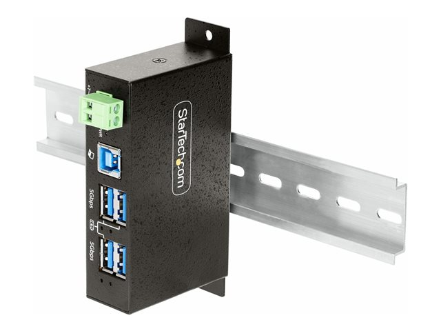 StarTech.com 4-Port Managed USB Hub with 4x USB-A, Heavy Duty with Metal Industrial Housing, ESD & Surge Protection, Wall/Desk/Din-Rail Mountable, USB 3.0/3.1/3.2 Gen 1 5Gbps - Concentrateur (hub) - 3 x USB 3.2 Gen 2 + 1 x USB 3.2 de 1ère génération - de bureau, Montage sur rail DIN, fixation murale - Conformité TAA