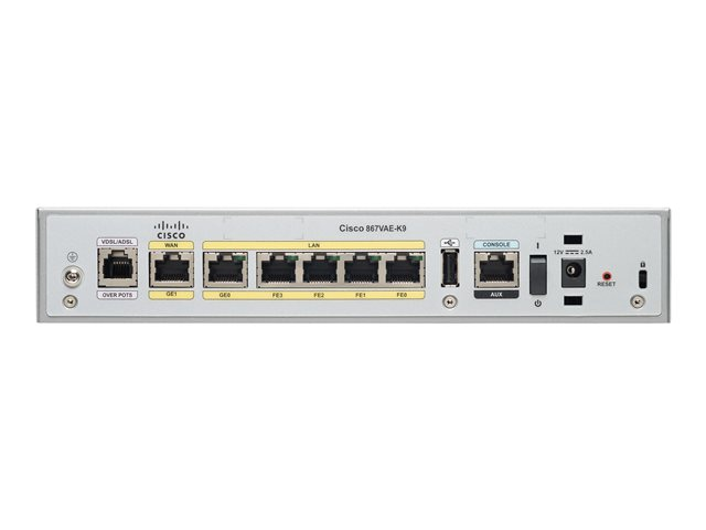 Cisco 867VAE - - routeur - - modem ADSL commutateur 4 ports - 1GbE - ports WAN : 2 - Montable sur rack - reconditionné