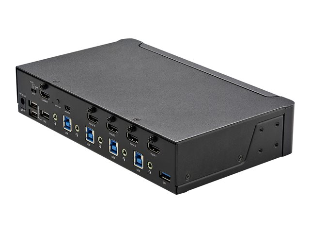 StarTech.com Commutateur KVM HDMI à 4 Ports - 1 Moniteur 4K 60Hz Ultra HDR - KVM de Bureau HDMI 2.0 avec Hub USB 3.0 à 2 Ports (5Gbps) et 4x USB 2.0 HID, Audio - TAA (SV431HU34K6) - Commutateur écran-clavier-souris/audio - 4 x KVM / audio - 1 utilisateur local - de bureau, Montable sur rack - Conformité TAA SV431HU34K6