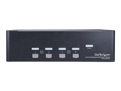 StarTech.com Switch KVM double affichage DisplayPort 4K 60 Hz à 4 ports avec hub USB 2.0 intégré - Commutateur écran-clavier-souris/audio/USB - 4 x KVM / audio / USB - 1 utilisateur local - de bureau, Montable sur rack
