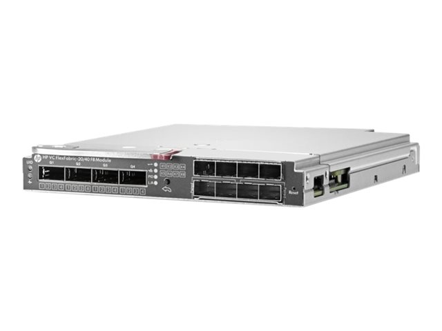 HPE Virtual Connect FlexFabric-20/40 F8 Module - Commutateur - Géré - 16 x Ethernet 10/20 Go (liaison descendante de fond de panier) + 2 x Ethernet 20 Go (liaison à connexion croisée) + 4 x QSFP+ 40 Gibabit (voie montante) + 8 x SFP+ 10 Go (liaison montante) - Module enfichable